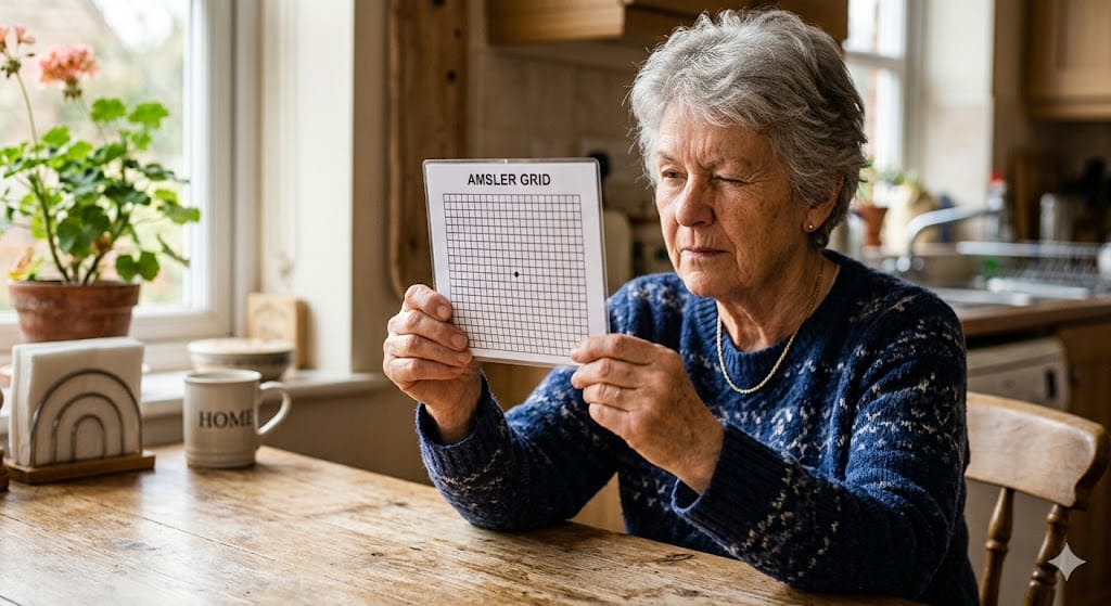 Evde Amsler Grid testi ile bu değişiklikler düzenli olarak takip edilebilir. Amsler Grid testinin nasıl yapıldığını adım adım öğrenebilirsin.