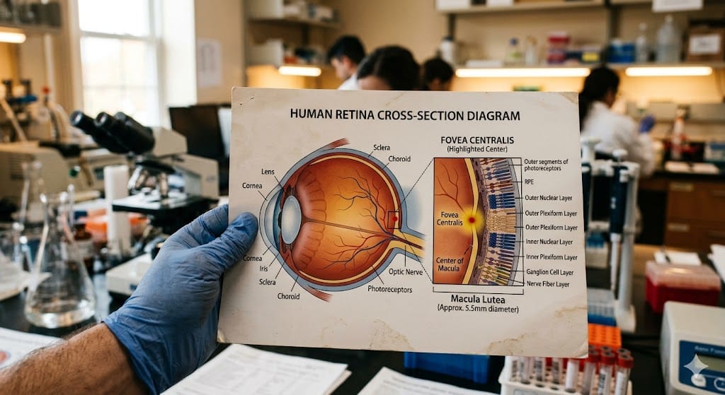 Makula, gözün en arka tabakası olan retinanın tam merkezinde konumlanan, yaklaşık 5 mm çapında bir bölgedir. Bu küçük alanın içindeki sarı pigment yoğunluğu — ağırlıklı olarak lutein ve zeaksantinden oluşur — ona karakteristik sarı rengini verir; bu yüzden halk arasında “sarı nokta” adıyla anılır. Makulanın tam ortasındaki çok küçük çukurcuğa ise fovea denir ve burada ışığa en duyarlı fotoreseptör hücreler yoğun biçimde bulunur.